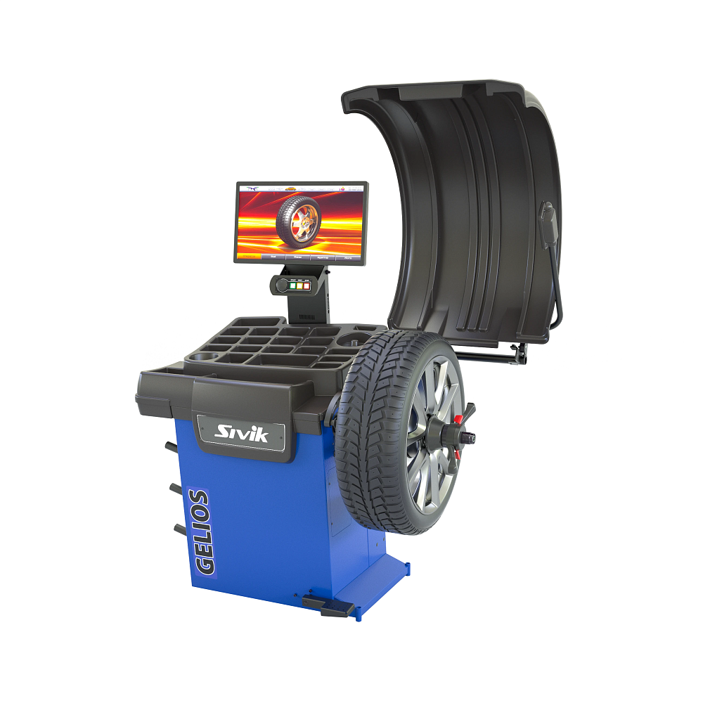 Sivik GELIOS NEW УЗ + ТЛУ (Гелиос УЗ + ТЛУ) - обновленная версия (серийное производство - с 01.07.2021 г.) балансировочного станка с автоматическим вводом всех параметров балансируемого колеса, с ЖК-дисплеем высокого разрешения 22″, для балансировки дисков диаметром 10″-28″.