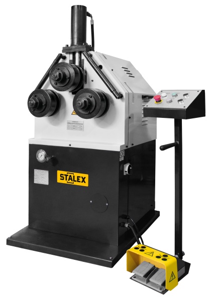 Крепкая устойчивая конструкция для длительного срока службы с 2-мя приводными нижними роликами и гидравлический привод верхнего вала. Простое управление, удобен в работе.