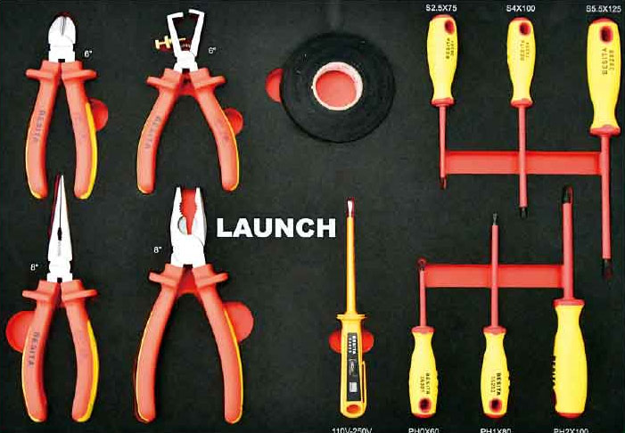 Launch TTH-84 - Набор для технического обслуживания электромобилей ТТН-84 включает наиболее востребованный электроизолированный инструмент, собранный в удобный шкаф на колесах: 2 глубокие полки и 5 малых ящиков.