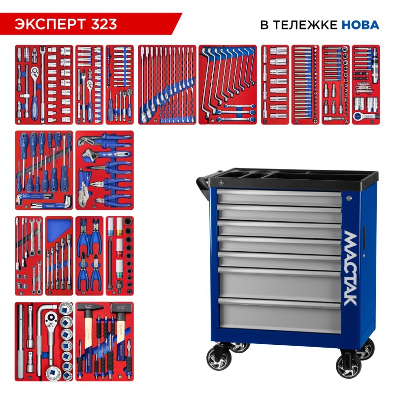 Набор инструментов 323 предмета, "ЭКСПЕРТ 323", в синей тележке МАСТАК 50-07323B купить в Москве цена ✅ - Все для СТО