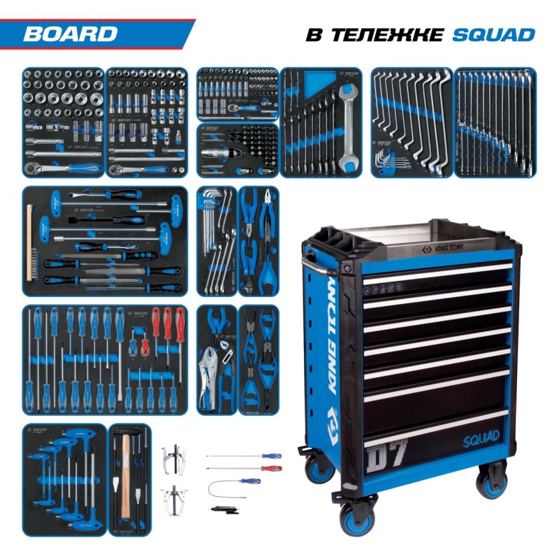 Набор инструментов 325 предметов, "BOARD", в синей тележке KING TONY 9SQ31-325MRV купить в Москве цена ✅ - Все для СТО