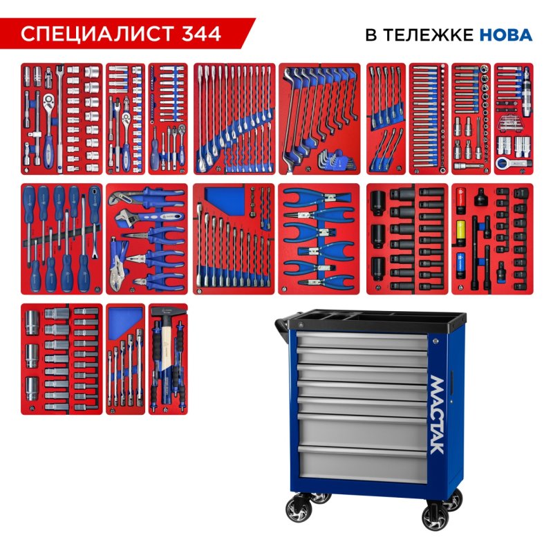 Набор инструментов 344 предмета, "СПЕЦИАЛИСТ 344", в синей тележке МАСТАК 50-07344B купить в Москве цена ✅ - Все для СТО