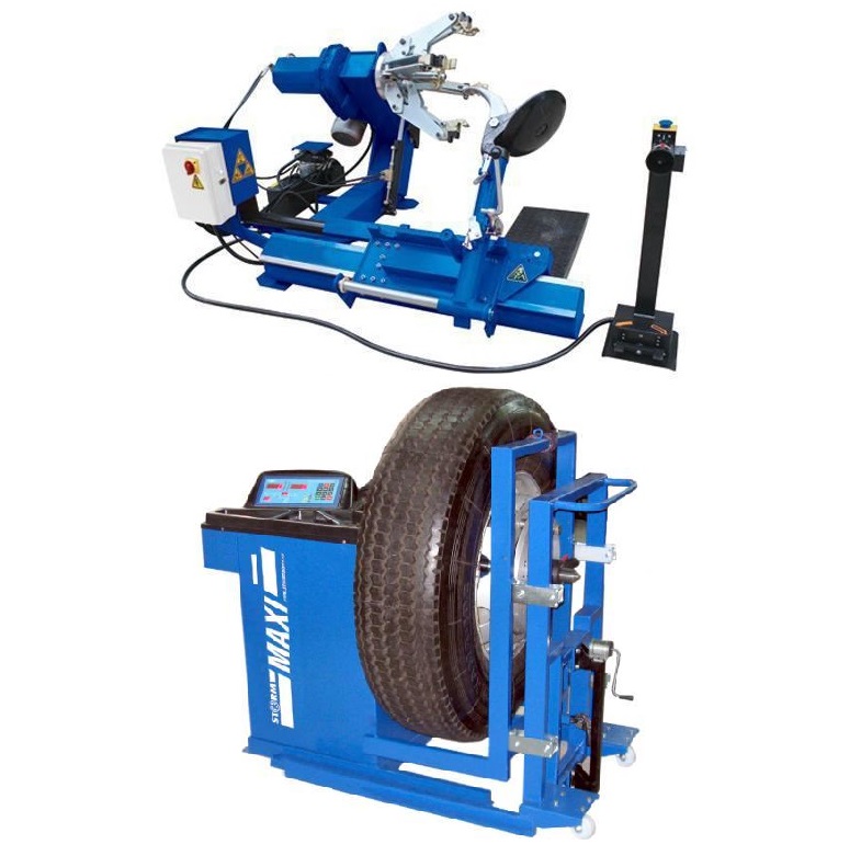Комплект полуавтоматический грузовой шиномонтажный стенд до 26" позволяет монтировать/демонтировать диски сталь, AL, с кольцами и без, 14-26”, Колесо макс. 1600*780мм, вес до 500кг. Моторы 1800 + 1500Вт. Гидравлика – немецкая «BUCHER HIDRAULICS». + ЛС-32 Универсальный грузовой балансировочный станок для колес диаметром от 10 до 30 дюймов, имеет две программы для работы с легковыми и грузовыми колесами, Максимальный вес колеса до 200 кг. Оснащен функциями автокалибровки и самодиагностики.В стандартный комплект входит набор конусов для установки колес легковых автомобилей, микроавтобусов и легковых грузовиков типа "Газель", а также универсальный адаптер для установки колес большинства типов грузовых автомобилей. Для установки тяжелых колес ЛС 32 MAXI комплектуется подкатной тележкой с ручным подъемным механизмом.