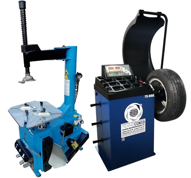не больших автобусов и коммерческой техники. Внешний зажим 10-21”. Внутренний зажим 12-24”. В комплекте: пистолет для подкачки шин + монтажка + регулятор давления с влагоотделителем и манометром. Рекомендуется для постов со средней и высокой проходимостью +  TS-550 Балансировочный станок (с лазером) - В комплекте: кожух с автозапуском + клещи + кронциркуль + быстрозажимная гайка + набор конусов.  Автоматический ввод дистанции и диаметра диска. Станок для колес легковых автомобилей, мотоциклов, «Газелей», «Спринтеров» и т.п. Ø покрышки ≤ 760 мм, вес ≤ 65 кг. Размеры диска: ширина 3–9” (76-228 мм) , диаметр диска 10–24” (256÷610 мм). Точность ±1гр. 220 В. Режимы работы DINAMIC, STATIC, ALU1, ALU2, ALU3,  ALUS, ST. Автокалибровка. Позволяет производить шиномонтаж и балансировку колес до 24" включительно. <br>