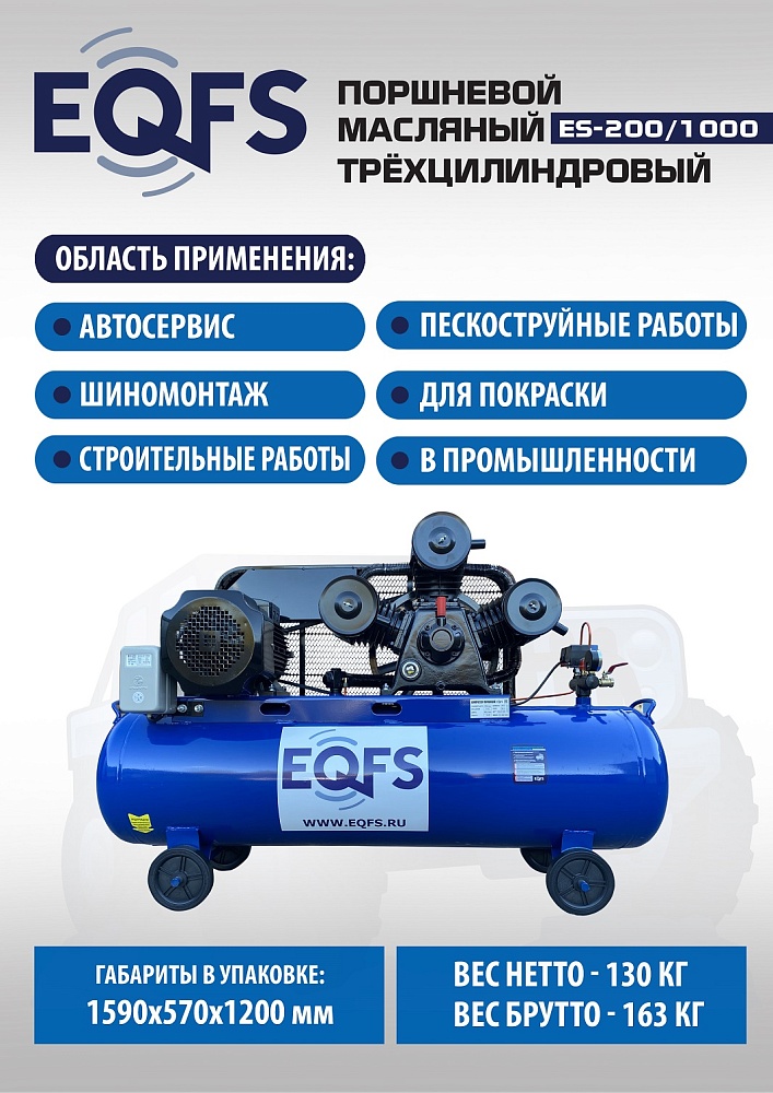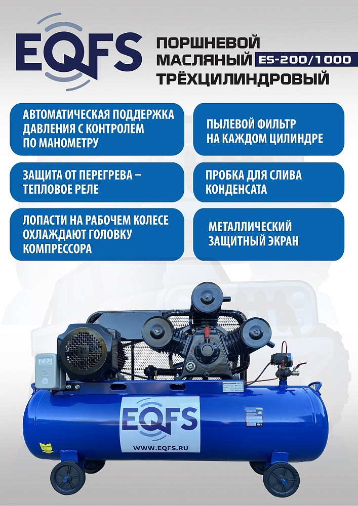 ES-200/1000 Компрессор поршневой трехцилиндровый 200 литров купить в Москве цена ✅ - Все для СТО