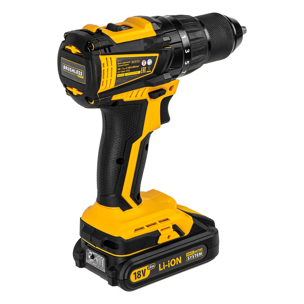 Дрель-шуруповерт аккумуляторная, бесщет. BLDL-IB-18-02, Li-Ion, 18 В, 2 акк. Denzel купить в Москве цена ✅ - Все для СТО