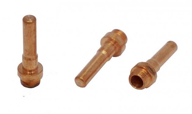 Катод - расходная часть плазмотрона. Оснастку изготавливают из сплава меди и латуни. Данный сплав обладает отличными показателями токопроводимости, высокими прочностными характеристиками, а так же способствует лучшему теплоотводу. Чаще всего для работы в нейтральных плазмообразующих средах в качестве сердечника электрода используют вольфрам, в окислительных средах применяют катоды из циркония или гафния.