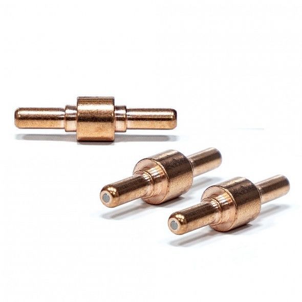 Катод - расходная часть плазмотрона. Оснастку изготавливают из сплава меди и латуни. Данный сплав обладает отличными показателями токопроводимости, высокими прочностными характеристиками, а так же способствует лучшему теплоотводу. Чаще всего для работы в нейтральных плазмообразующих средах в качестве сердечника электрода используют вольфрам, в окислительных средах применяют катоды из циркония или гафния.