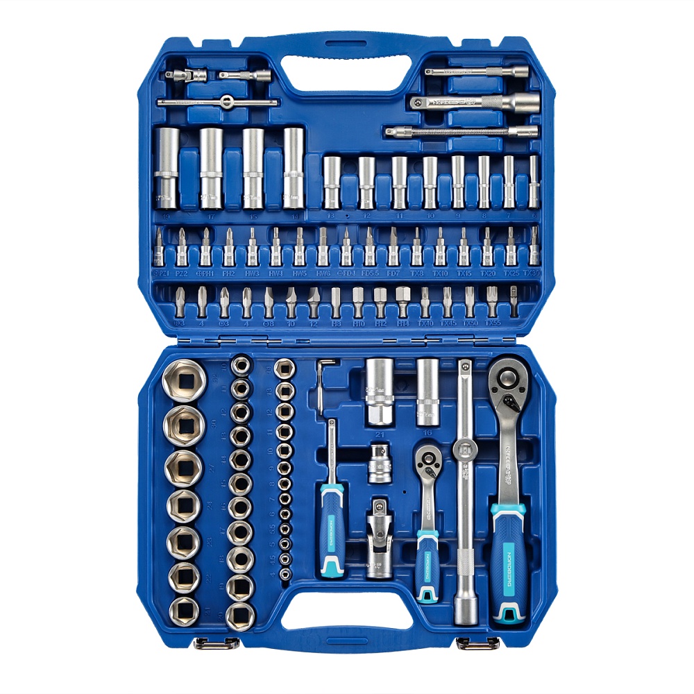 94 предметов в комплекте — оптимальный набор головок, ключей и насадок для широкого спектра работ;
