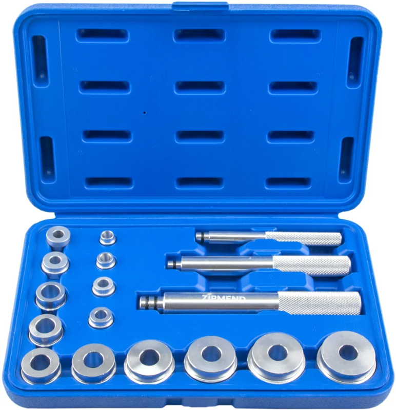 - Оправки для запрессовки: 10х12, 12х14, 14х16, 15х17, 16х18, 18х20, 20х22, 22х24, 25х27, 28х30, 30х34, 32х36, 35х40, 38х42 мм - 13 шт.