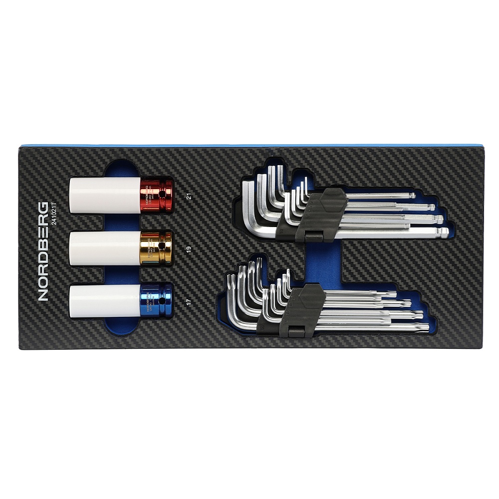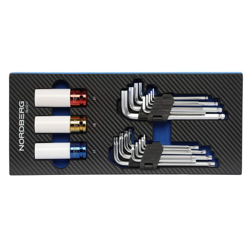 Набор шестигранных ключей и ударных головок 21 предмет в ложементе для тележки NORDBERG 241021T купить в Москве цена ✅ - Все для СТО