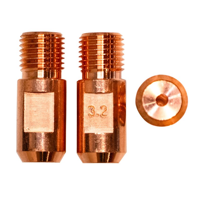 Наконечник – расходная часть MIG/MAG горелки, которая обеспечивает токосъём в процессе сварки, поэтому наконечники, так же называют контактными. Кроме того, через наконечник в процессе сварки подаётся проволока. Для оптимальной работы и идеального контакта необходимо, чтобы диаметр отверстия наконечника и сечение проволоки – совпадали.
