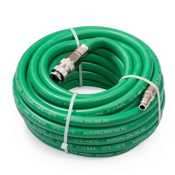Пневматические шланги AURORA предназначены для подключения разнообразного инструмента к источникам сжатого воздуха: пневмомагистралям, компрессорам и т.д. Широкий выбор диаметров и длин шлангов AURORA позволит подобрать именно тот вариант оснастки, который необходим для каждой конкретной ситуации от подкачки шин до работы гайковёртов, краскопультов, полировальных машин и пр. Рукава изготовлены из синтетического каучука (NBR), армированного капроновой нитью и предназначены для работы со сжатым воздухом с давлением до 15Бар. Температура эксплуатации от -15 до +40С.  Шланги оснащены фитингами рапид.