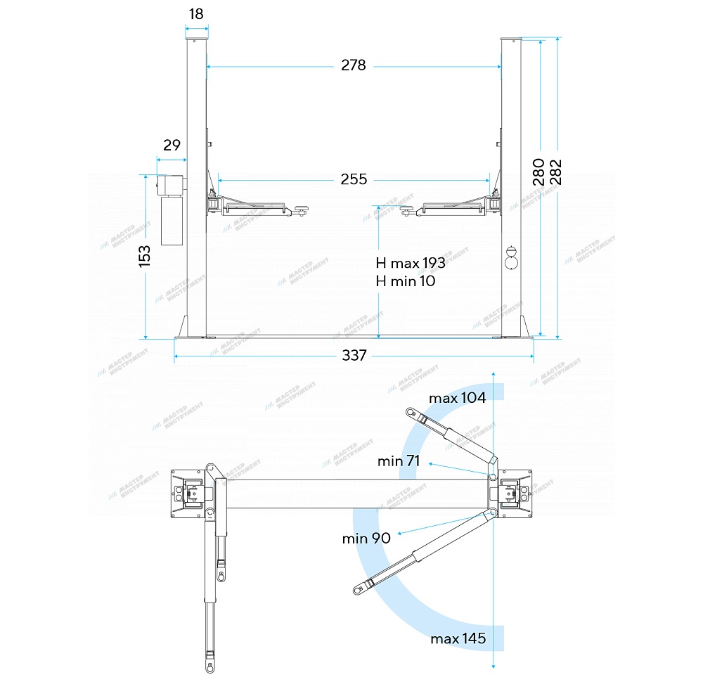 Подъемник двухстоечный 4 т с нижней синхронизацией, H=2,8 м, 220 В, синий . STX40TT_220 купить в Москве цена ✅ - Все для СТО