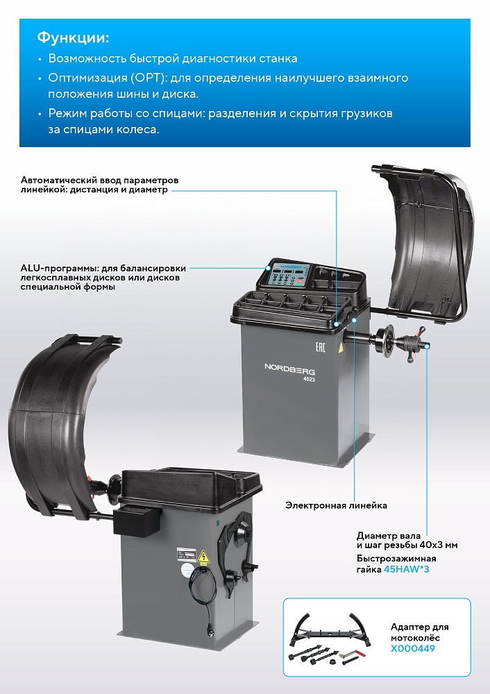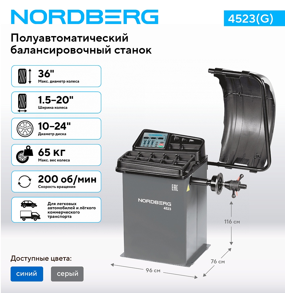 Станок балансировочный с автоматическим вводом двух параметров, серый NORDBERG 4523(G) купить в Москве цена ✅ - Все для СТО