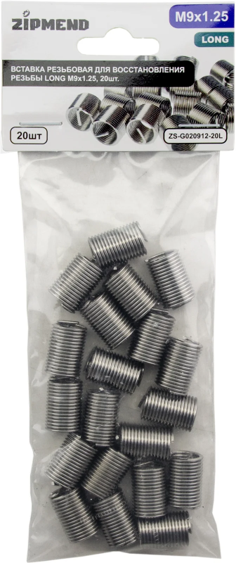 Вставка резьбовая для восстановления резьбы LONG M9 х 1.25, 20шт., ZIPMEND
