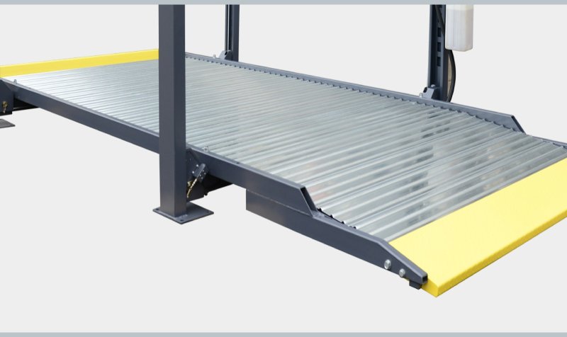 Конструкция подъёмника выполнена по классической четырёхстоечной схеме, что обеспечивает высокую устойчивость и равномерное распределение нагрузки. Подъём осуществляется плавно и контролируемо, без перекосов, что особенно важно при длительном хранении автомобиля на высоте.