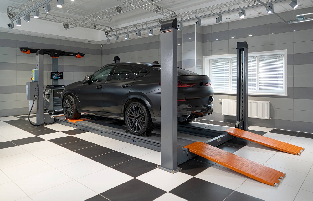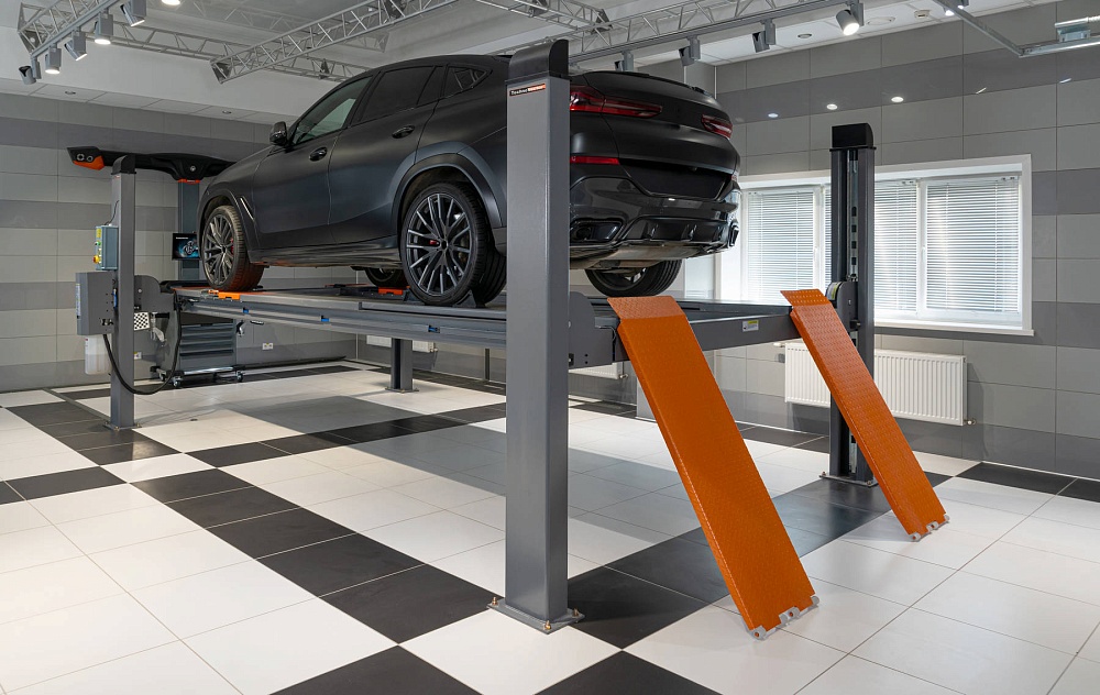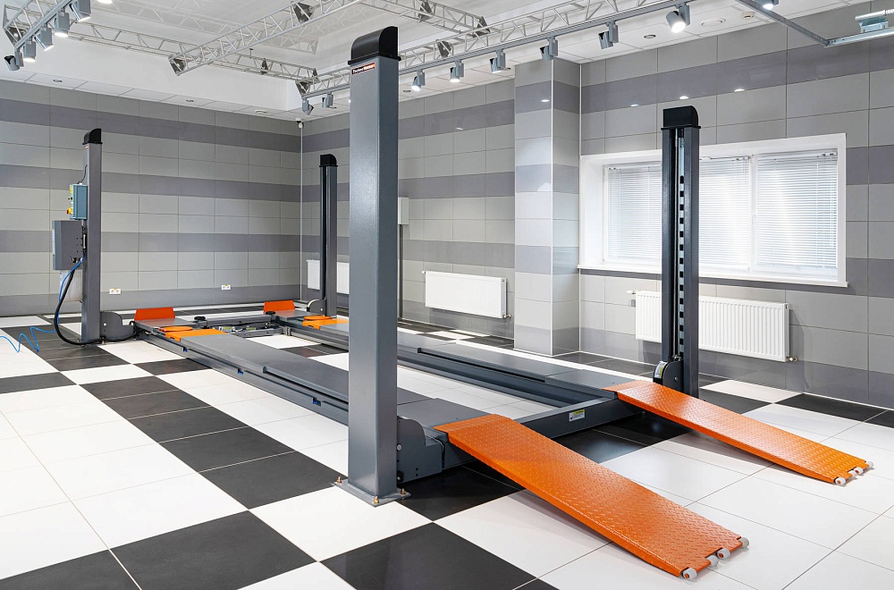 Подъёмник предназначен для диагностики, ремонта и регулировки углов установки колёс. Позволяет обслуживать автомобили с любой колесной базой — от компактных малолитражек до длиннобазных легковых автомобилей и легкого коммерческого транспорта.