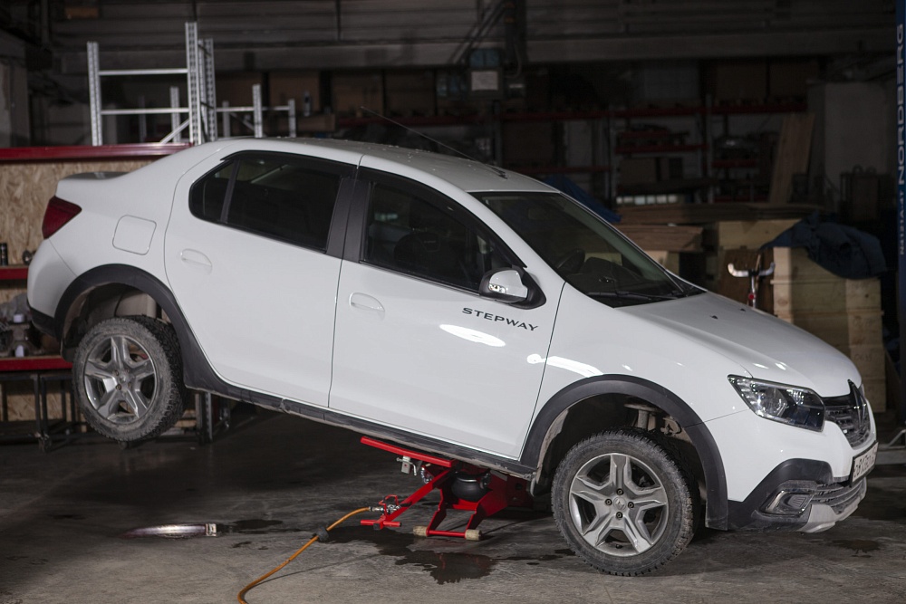 Подкатной пневмоподъемник ножничного типа, за счет своих габаритов и мобильности ,позволяет поднимать автомобили в небольших помещениях с низкими потолками, и даже на улице. За счет поднятия всего автомобиля на высоту до 1 метра, появляется доступ к дверям, порогам и бамперам .Спец версия данного подъемника, позволяет перекатывать автомобиль по рабочему пространству вместе с подъемником.