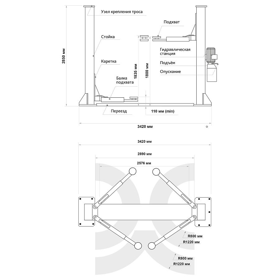 | Грузоподъемность | 4000 кг | Снятие стопоров | на 2 колоннах |