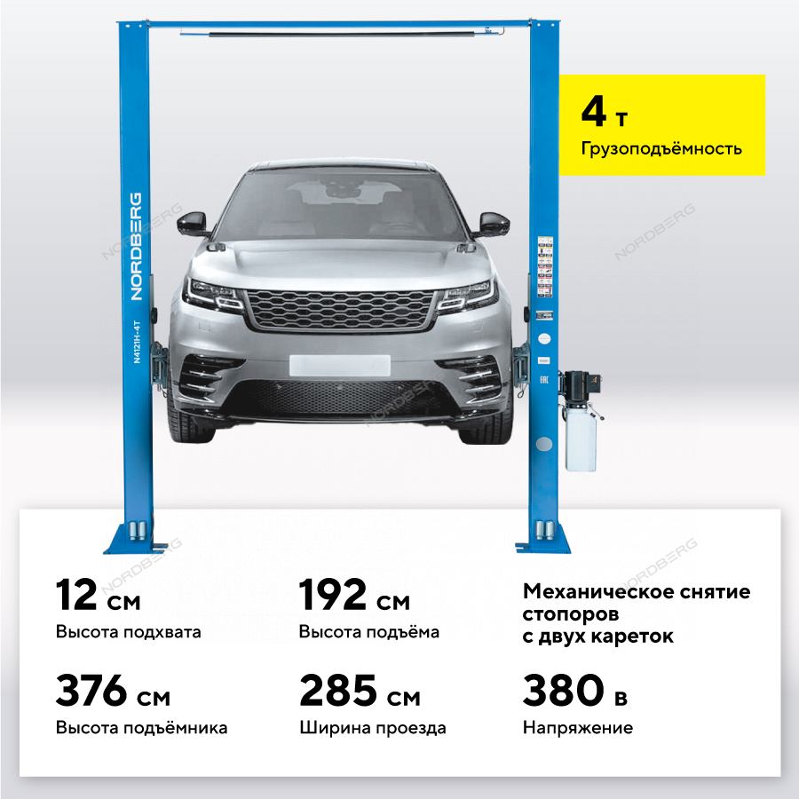 Подъемник 220V с верхней синхронизацией NORDBERG N4121H-4T купить в Москве цена ✅ - Все для СТО
