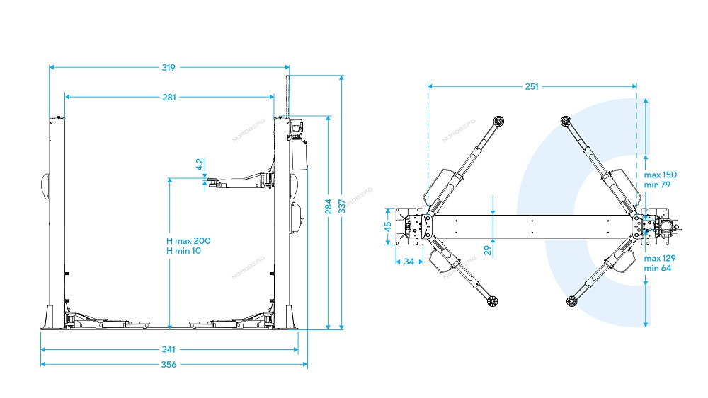 Подъемник 2х стоечный г/п 4,5т, 380В (серый) NORDBERG N4125-4,5G купить в Москве цена ✅ - Все для СТО