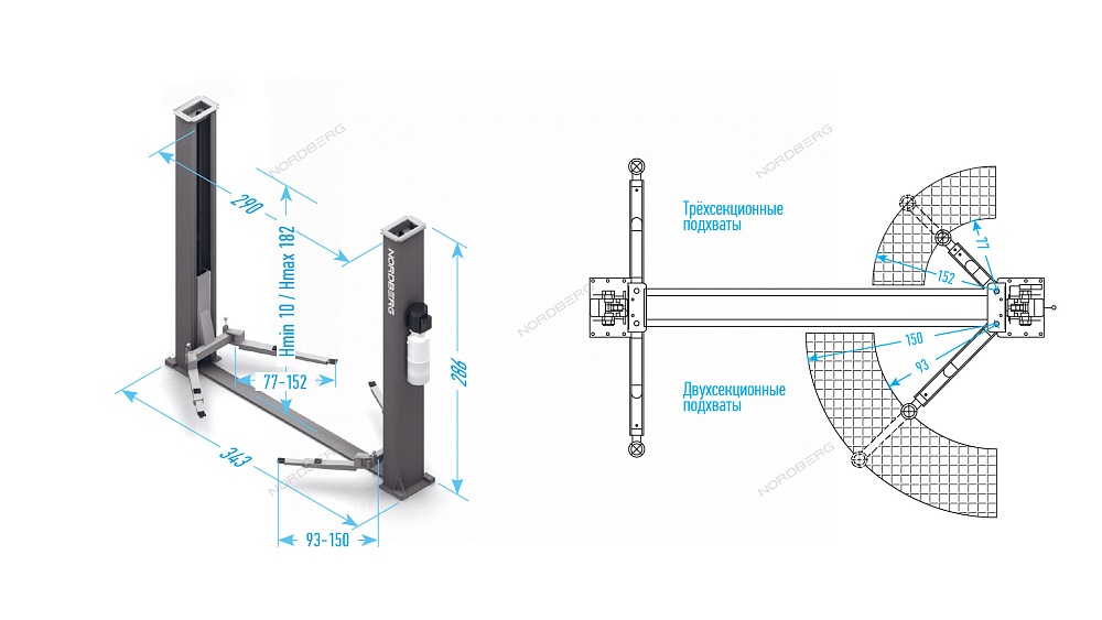 Двухстоечный подъемник 380 В с грузоподъемностью 4,5 т NORDBERG N4124AM-4,5G