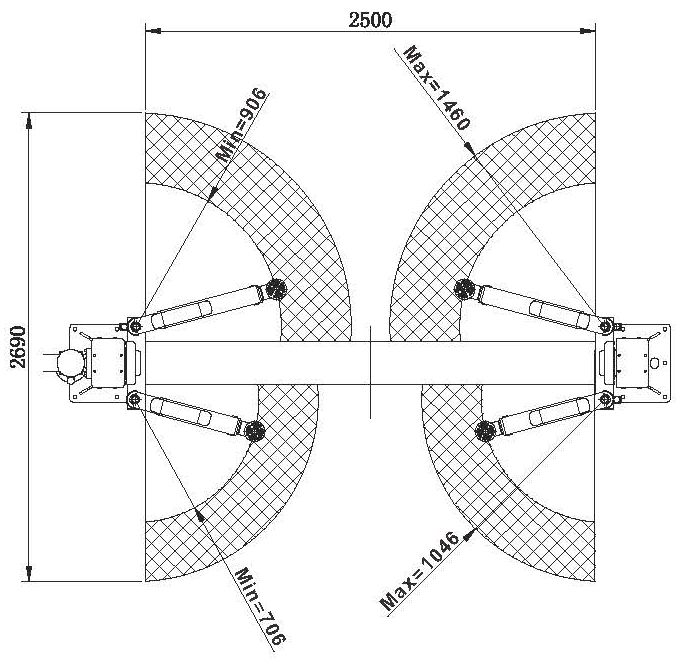 Длина задних лап 800-1220 мм Ширина проезда 2576 мм