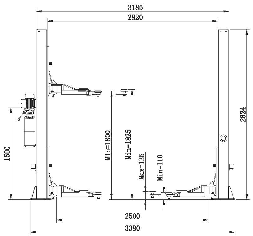 Объем бака гидронасоса 10 л. Общая высота 2850 мм