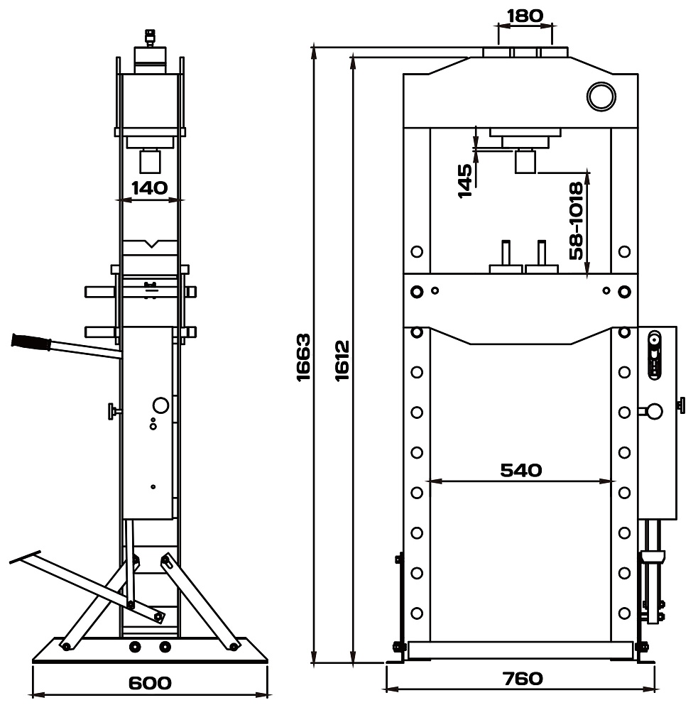 Гиравлический пресс с ручным и пневматическим приводом изготовлен в соответствии с европейскими нормами безопасности и стандартами качества. Полностью сварная рама, изготовленная с применением роботизированных технологий обеспечивает максимальную прочность конструкции.