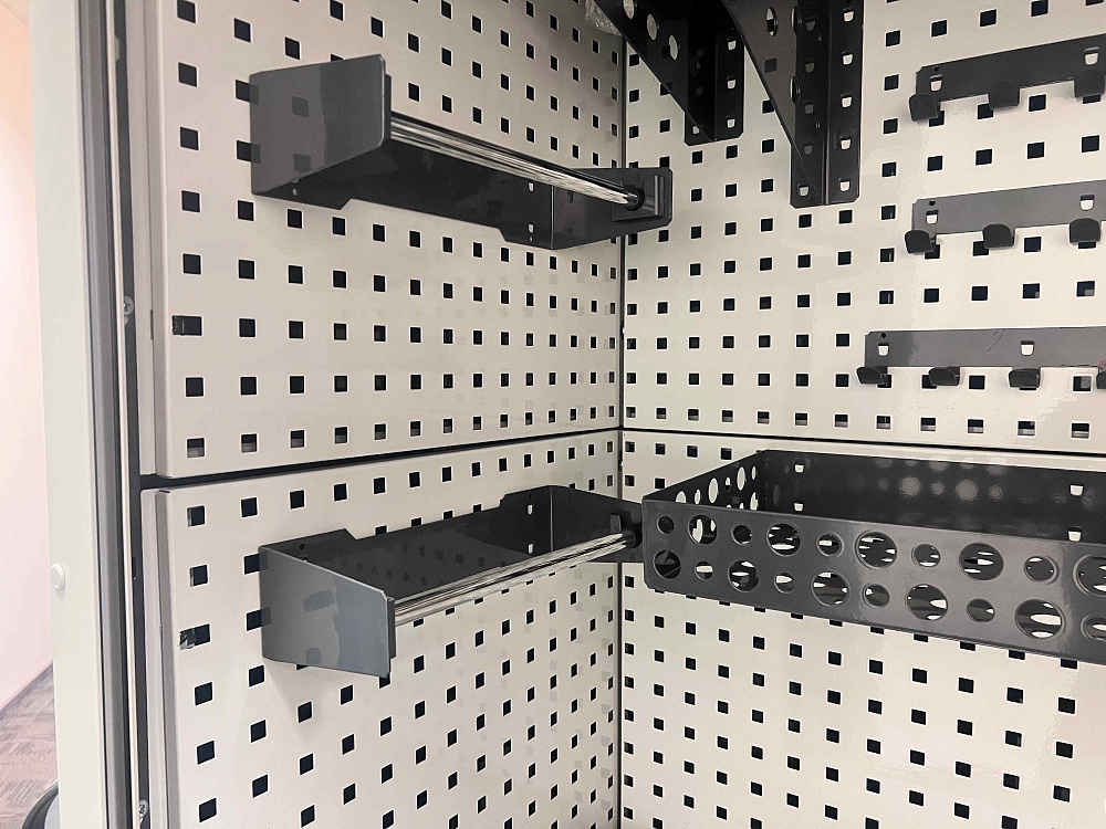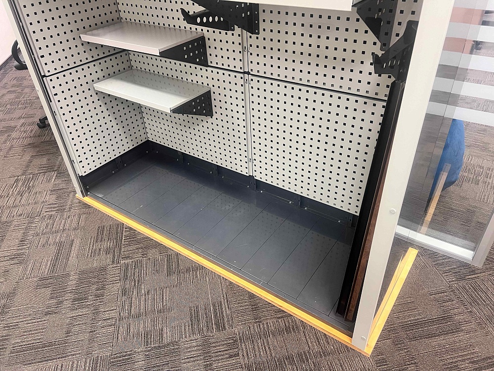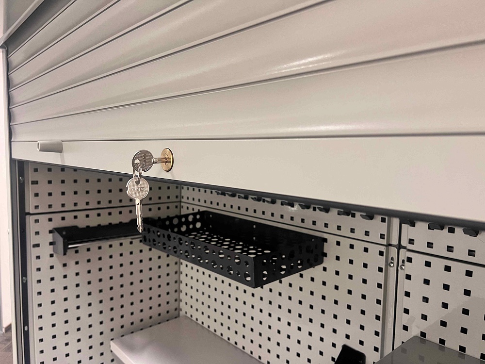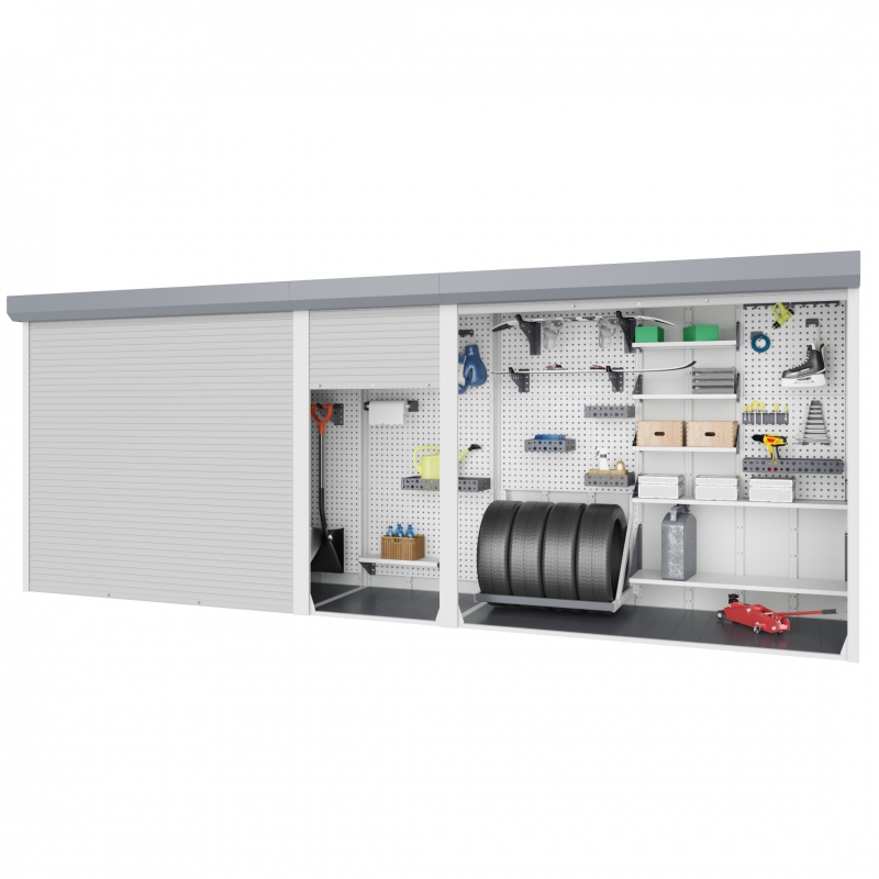 Модульная система хранения с тремя независимыми роллетными блоками. Сборная конструкция, оцинкованный металл, порошковая окраска, антикоррозийная обработка, множество вариантов наполнения.