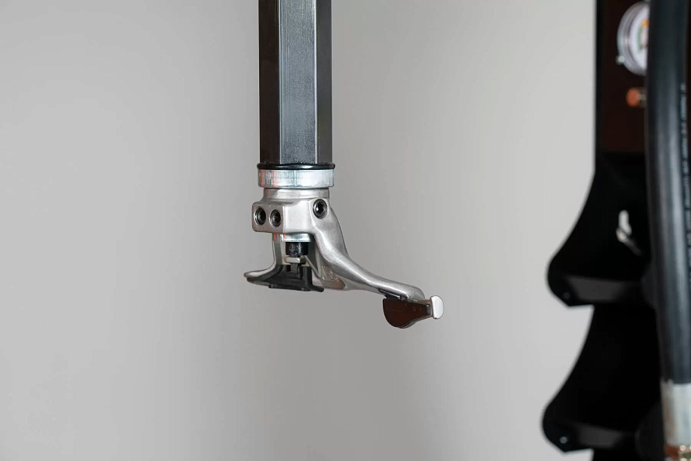 • Манометр контроля давления воздуха смонтирован на монтажной стойке. Накачка нажатием ногой на педаль.