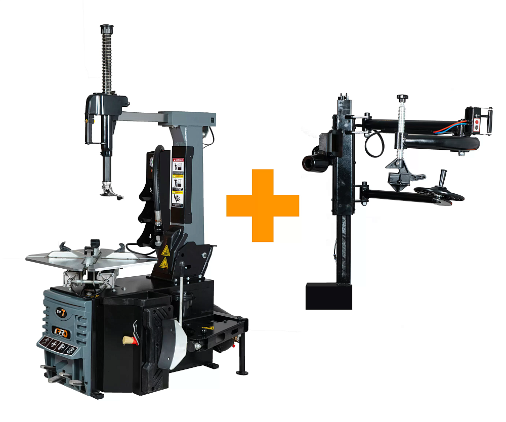Комплект состоит из автоматического шиномонтажного станка iPRO TM7 с отклоняемой монтажной стойкой, взрывной накачки и вспомогательного рычага AL321C ("третья рука").