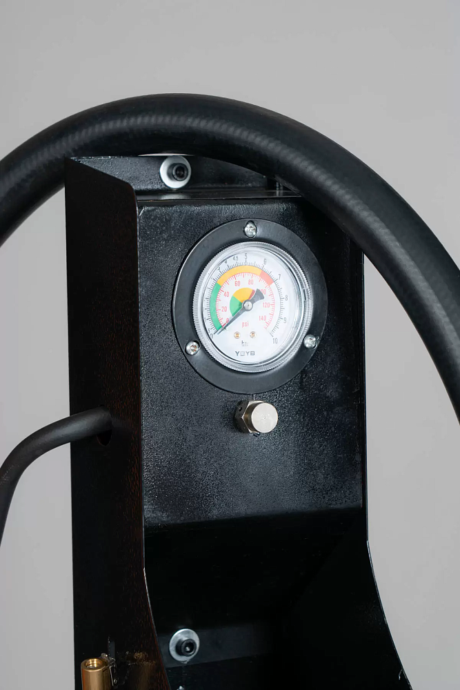 • Манометр контроля давления воздуха смонтирован на монтажной стойке. Накачка - нажатием ногой на педаль.