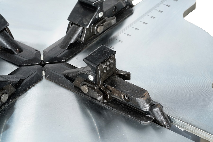 Поворотный стол специальной формы с самоцентрирующимся четырехкулачковым механизмом зажима дисков надежно фиксирует колеса диаметром до 1040 мм.
