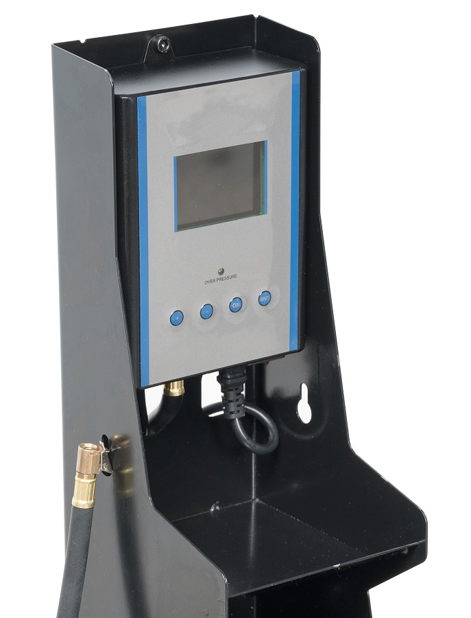 Автоматическое устройство подкачки шин на колонне с шлангом для подкачки шин и цифровым манометром с ЖК дисплеем.