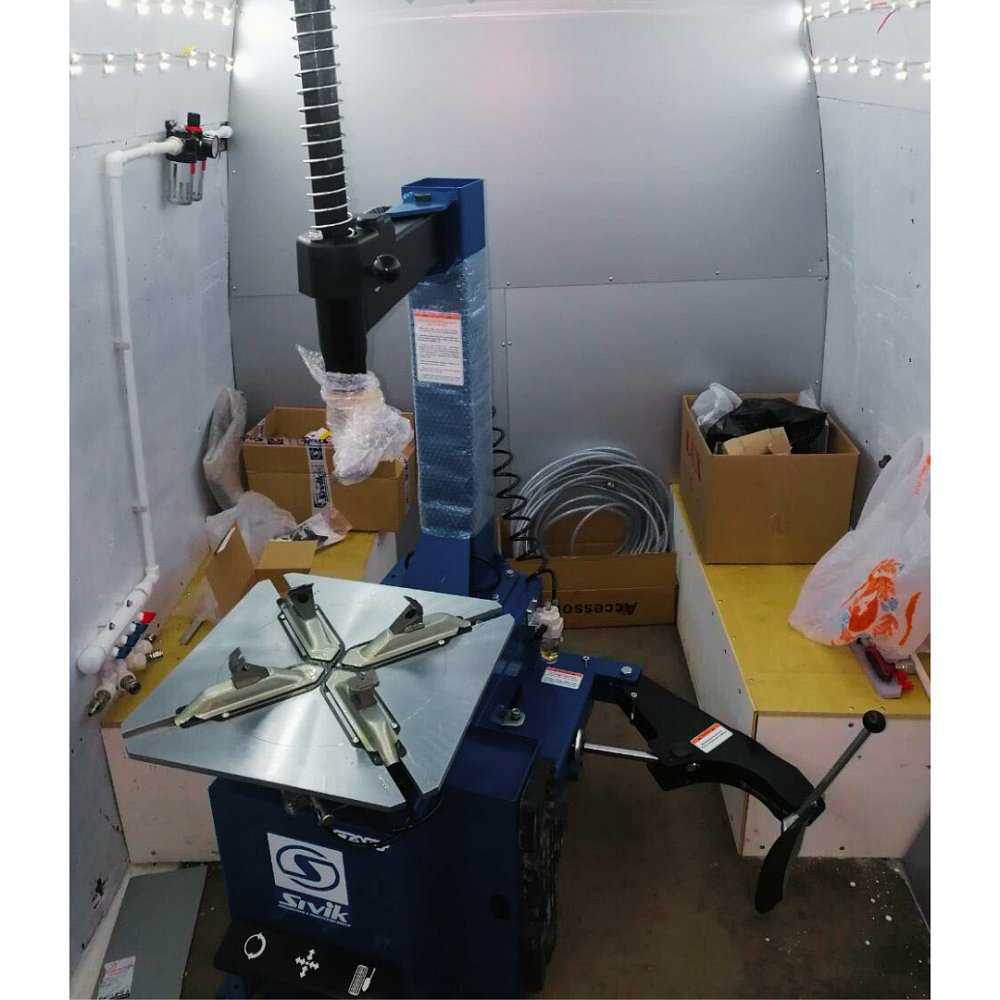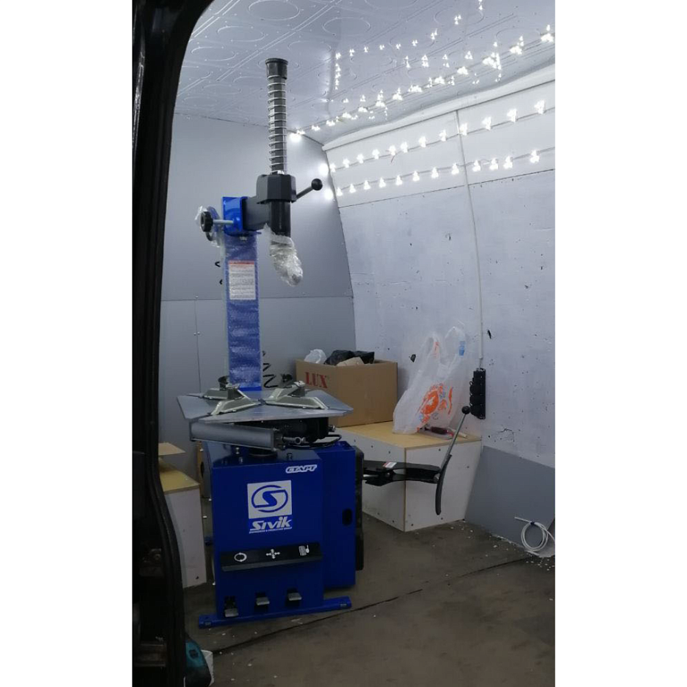 • Благодаря небольшим габаритам станок легко можно разместить в небольшом помещении или в фургоне для мобильного шиномонтажа