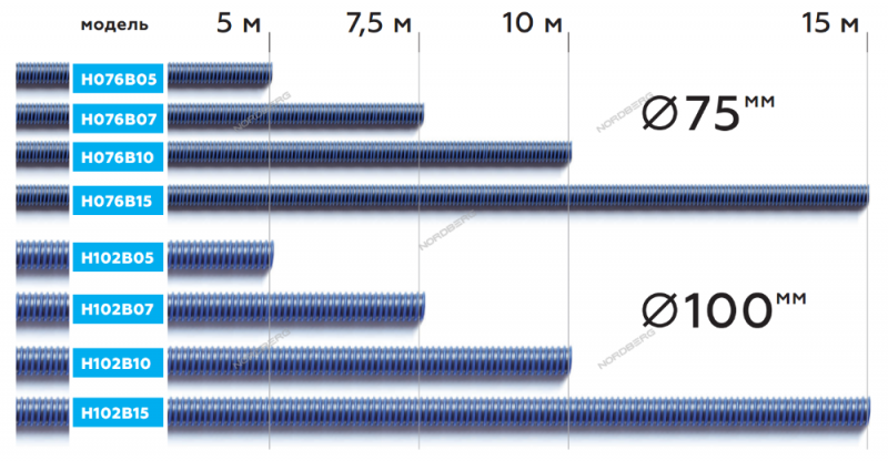 Шланг газоотводный H102B07 d=100мм, длина 7,5м (синий) NORDBERG купить в Москве цена ✅ - Все для СТО