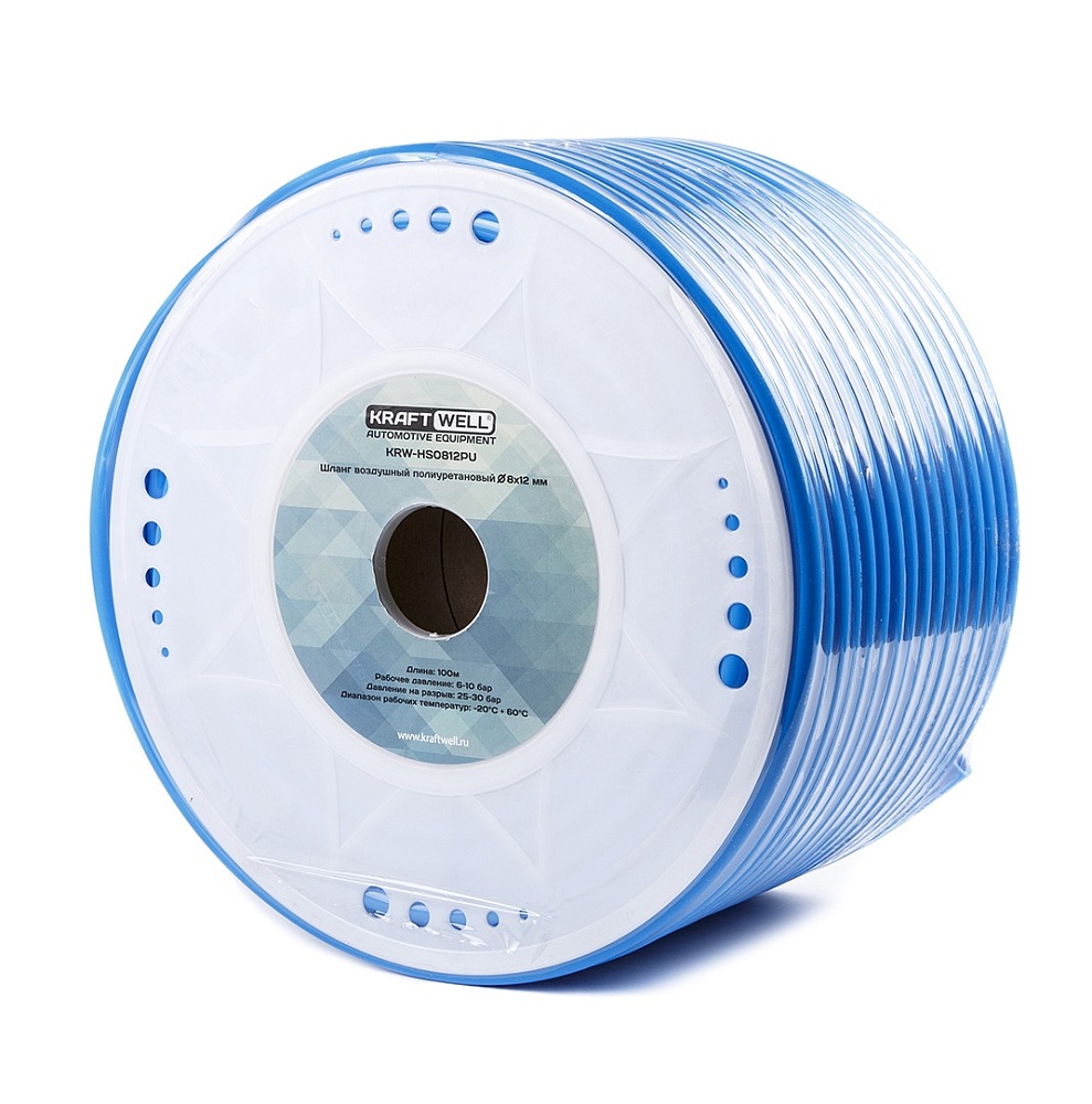 KraftWell KRW-HS0812PU Шланг воздушный полиуретановый на катушке D8X12 мм, 100 м купить в Москве цена ✅ - Все для СТО