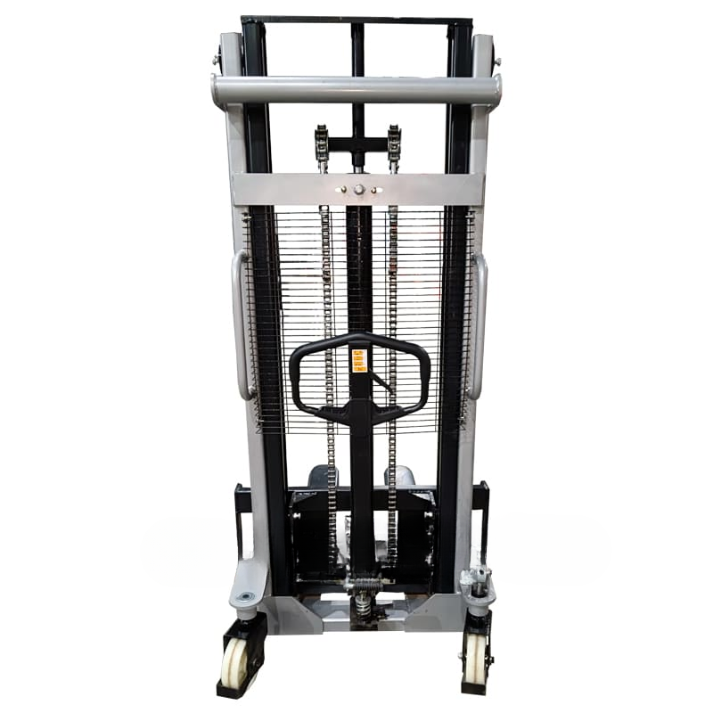 • Стабильная грузоподъёмность. Штабелер рассчитан на работу с грузами до 1000 кг — подходит для стандартных европоддонов и промышленных паллет.