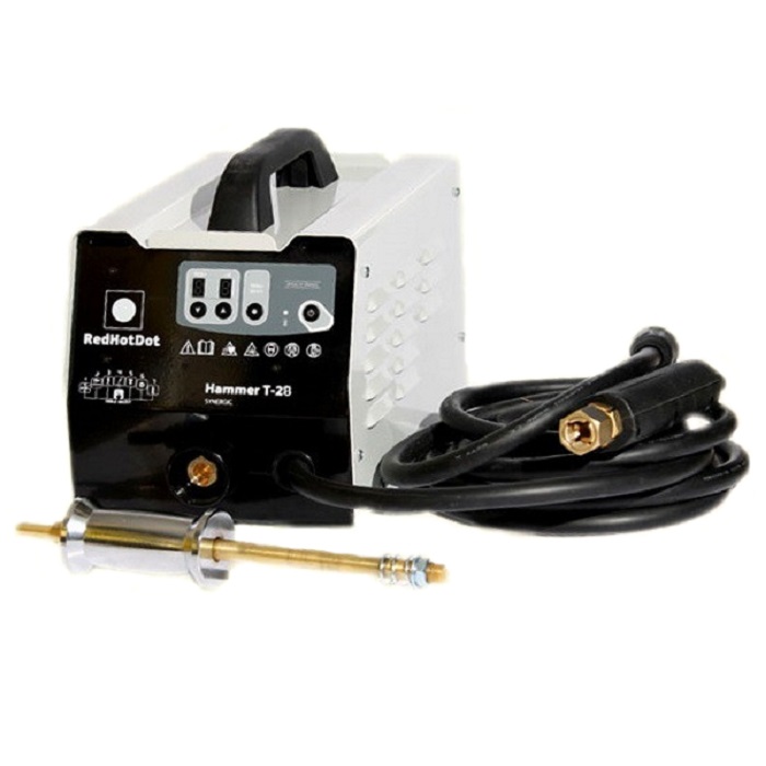 Стандартная комплектация: - споттер; - 2-м кабель заземления (массы), с зажимом 70 мм²; - пистолет со съемным кабелем длиной 2 м, 70 мм²; - 8-м кабель питания; - обратный молоток 1100 г.