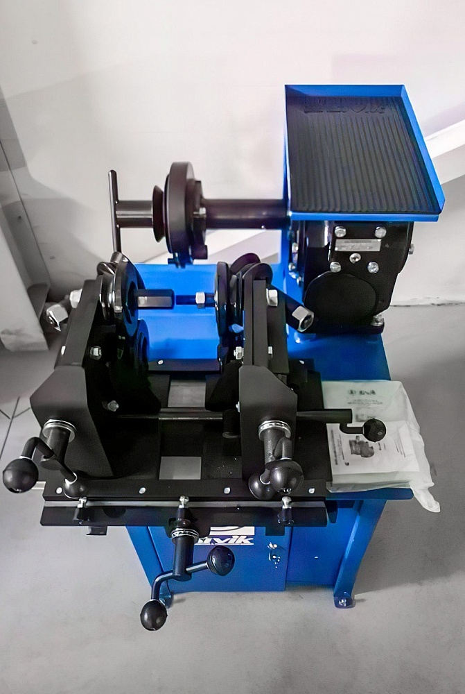 • Регулировка под ширину диска: установка роликов адаптируется под различную ширину колёс с помощью винтовой передачи.
