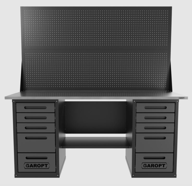 Надёжная конструкция, усиленная столешница и ёмкие ящики обеспечивают удобное хранение инструмента и устойчивость при работе.